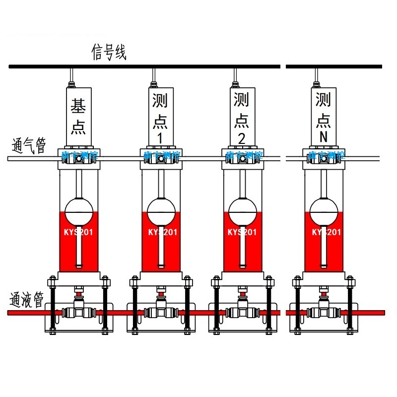 HDS202磁致伸縮式靜力水準儀是基于連通器原理,通過測量若干個相互聯通的安裝于被測量點儲液罐液面高度與測量基點(不動點)液罐液面高度的相對變化,反推出各個儲液罐安裝位置相對位置沉降變化量的一種精密儀器。